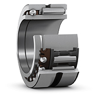 SKF 組合滾針軸承由徑向滾針軸承和推力軸承共同組成。 它們能同時(shí)承受徑向和軸向載荷。 在應(yīng)用中,當(dāng)其它類型的定位端軸承配置占用太多空間或者軸向載荷太重、轉(zhuǎn)速太高或帶簡(jiǎn)易止推墊圈的軸承配置潤(rùn)滑不足時(shí),尤其適合使用組合滾針軸承。 SKF 提供的組合滾針軸承有以下三種基本設(shè)計(jì):
