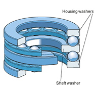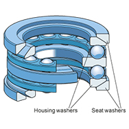雙向推力軸承使用的座圈和鋼球-保持架組件與單向推力軸承相同。